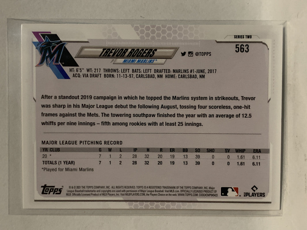 #563 Trevor Rogers Rookie Miami Marlins 2021 Topps Series 2 Baseball Card