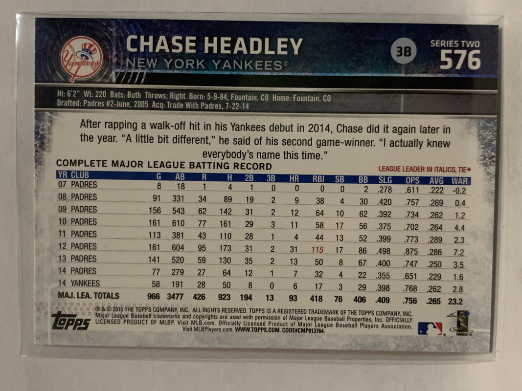 #576 Chase Headley New York Yankees 2015 Topps Series two Baseball Card