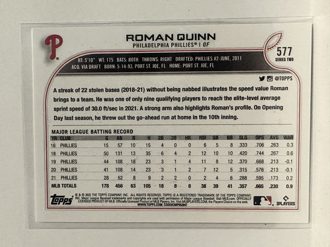 #577 Roman Quinn Philadelphia Phillies 2022 Topps Series Two Baseball Card