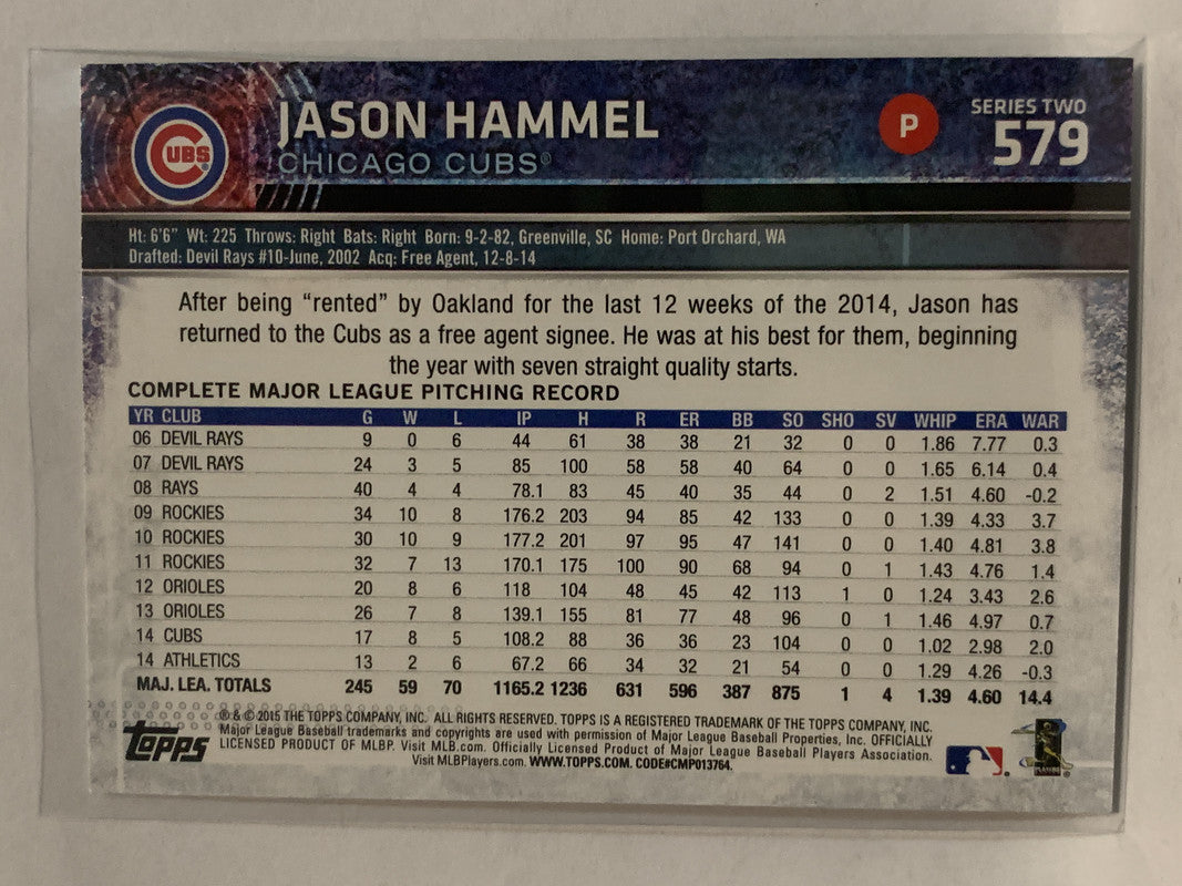 #579 Jason Hammel Chicago Cubs 2015 Topps Series two Baseball Card