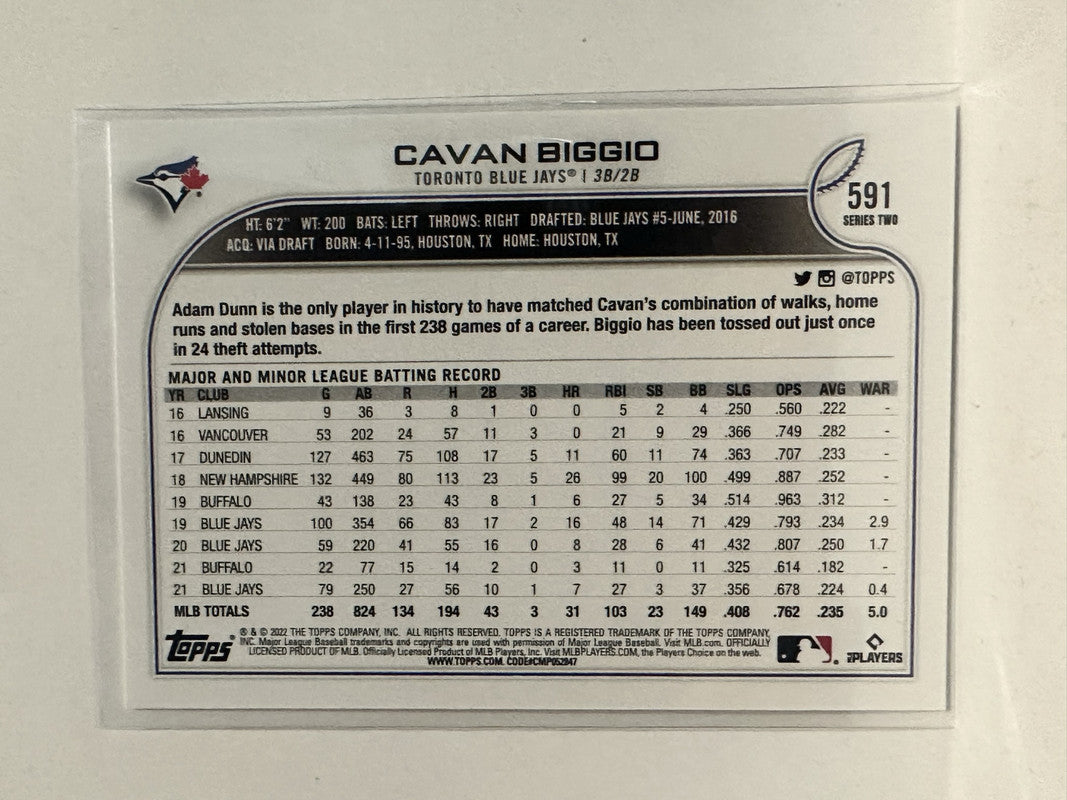 #591 Cavan Biggio Toronto Blue Jays 2022 Topps Series Two Baseball Card