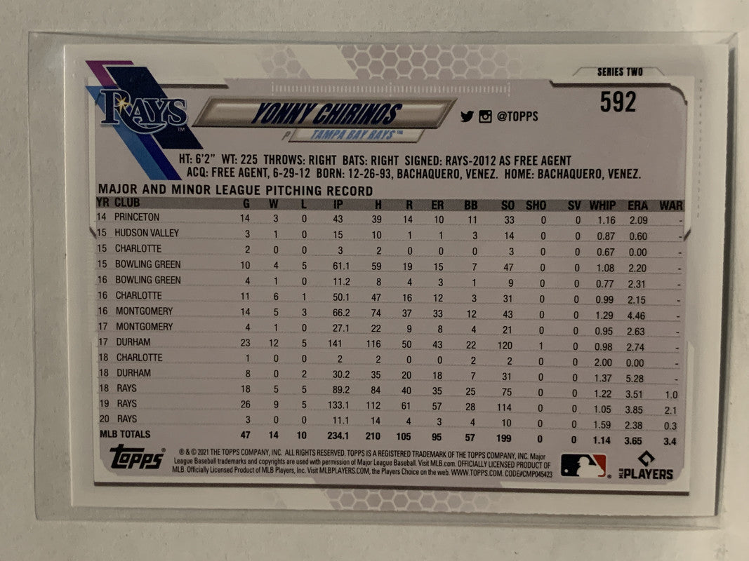 #592 Yonny Chirinos Tampa Bay Rays 2021 Topps Series 2 Baseball Card