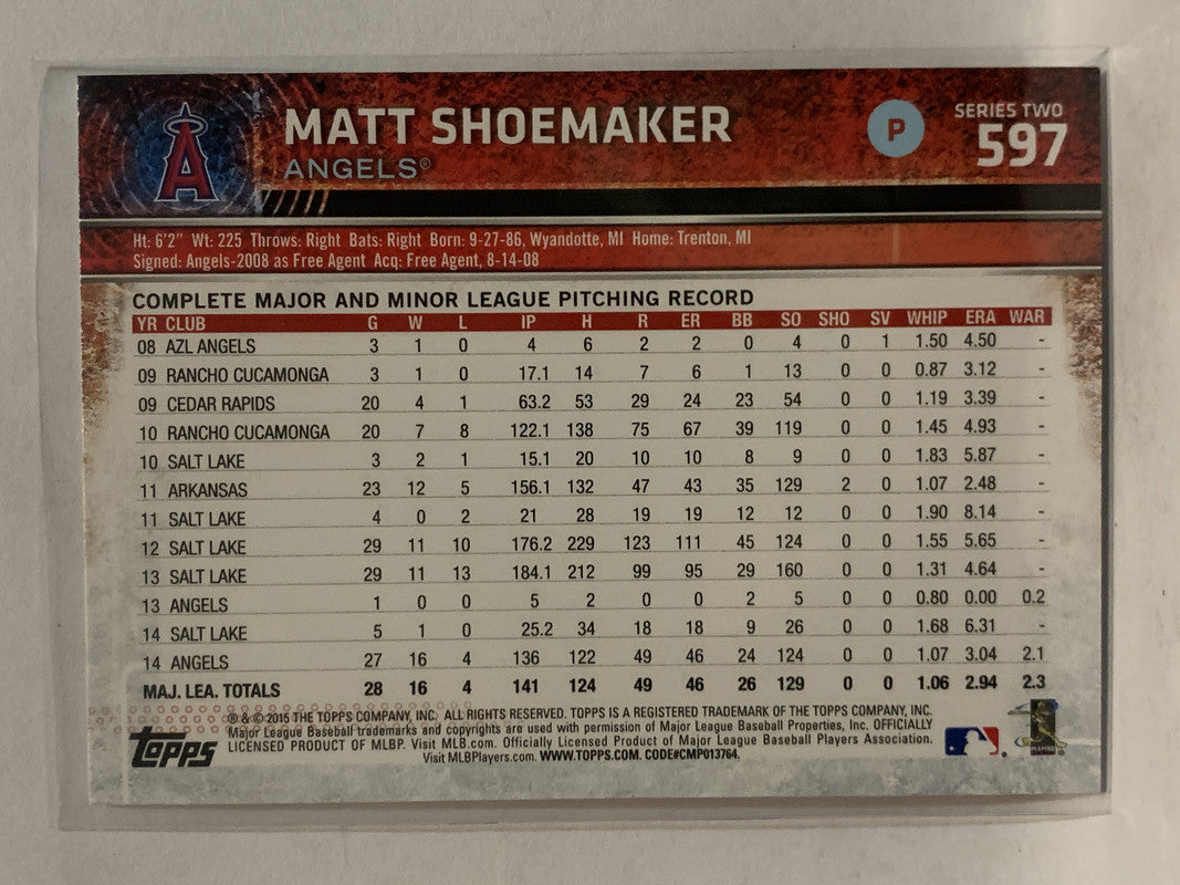 #597 Matt Shoemaker Future Stars Los Angeles Angels 2015 Topps Series two Baseball Card