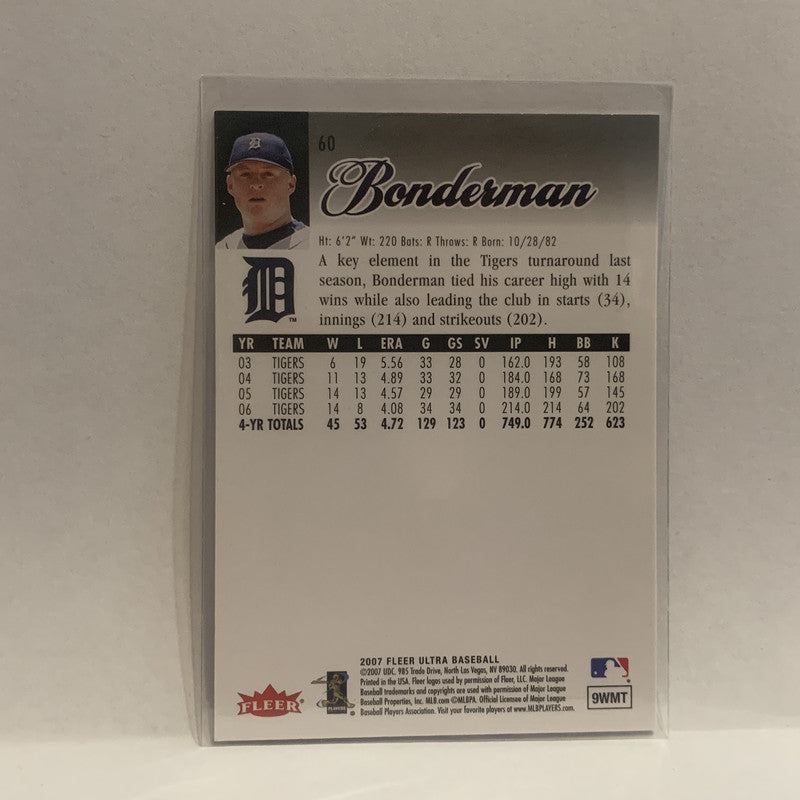 #60 Jeremy Bonderman Detroit Tigers 2007 Fleer Ultra Baseball Card HX