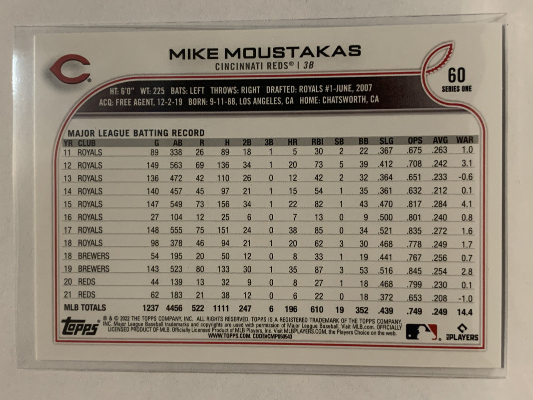 #60 Mike Moustakas Cincinnati Reds 2022 Topps Series 1 Baseball Card MLB