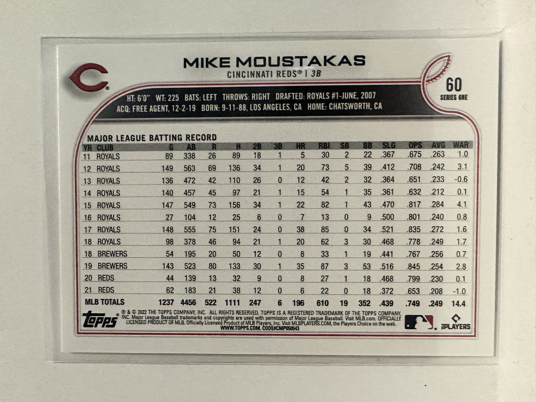 #60 Mike Moustakas Cincinnati Reds 2022 Topps Series One Baseball Card