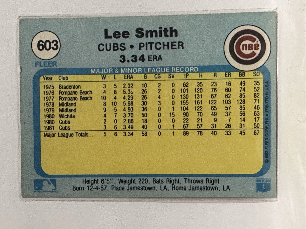 #603 Lee Smith Chicago Cubs 1982 Fleer Baseball Card