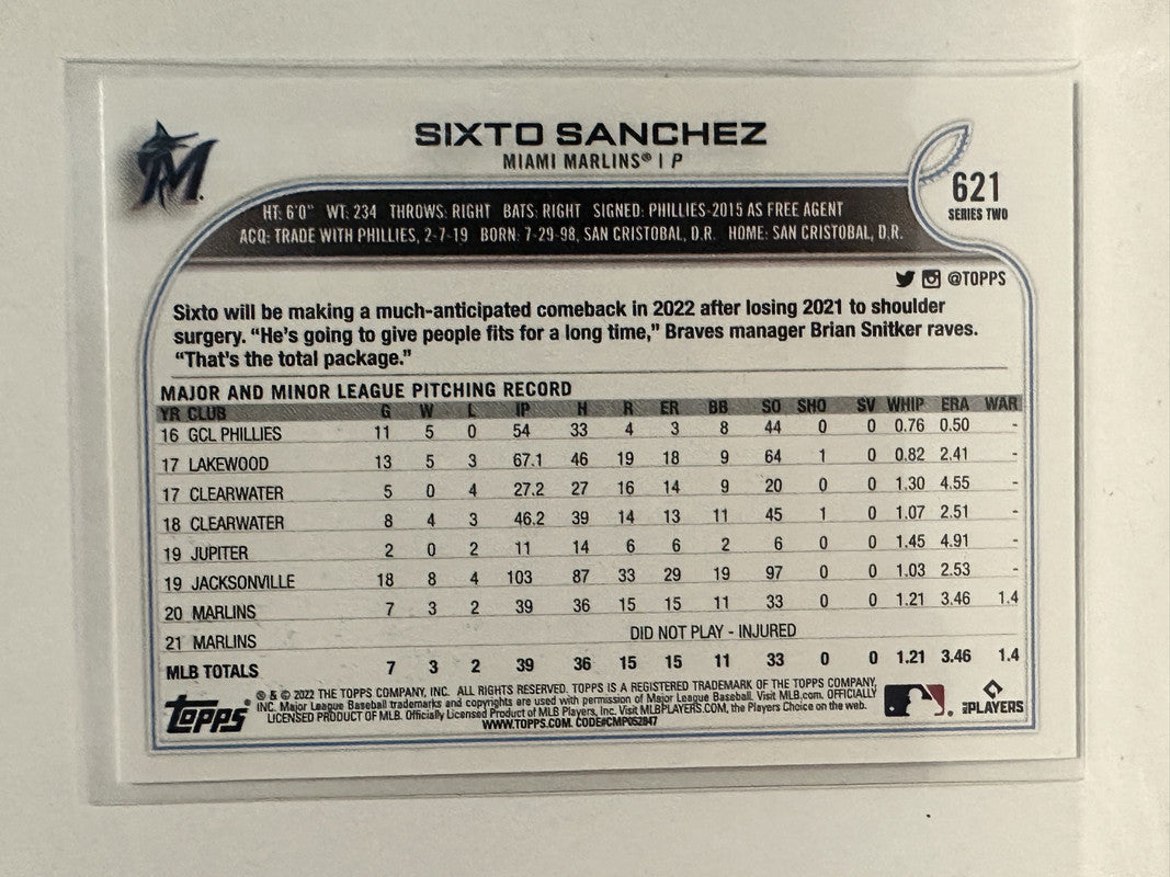 #621 Sixto Sanchez Miami Marlins 2022 Topps Series Two Baseball Card