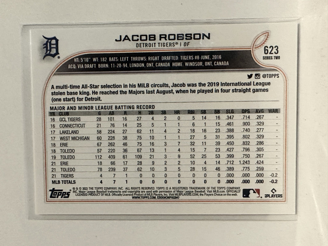 #623 Jacob Robson Rookie Detroit Tigers 2022 Topps Series Two Baseball Card