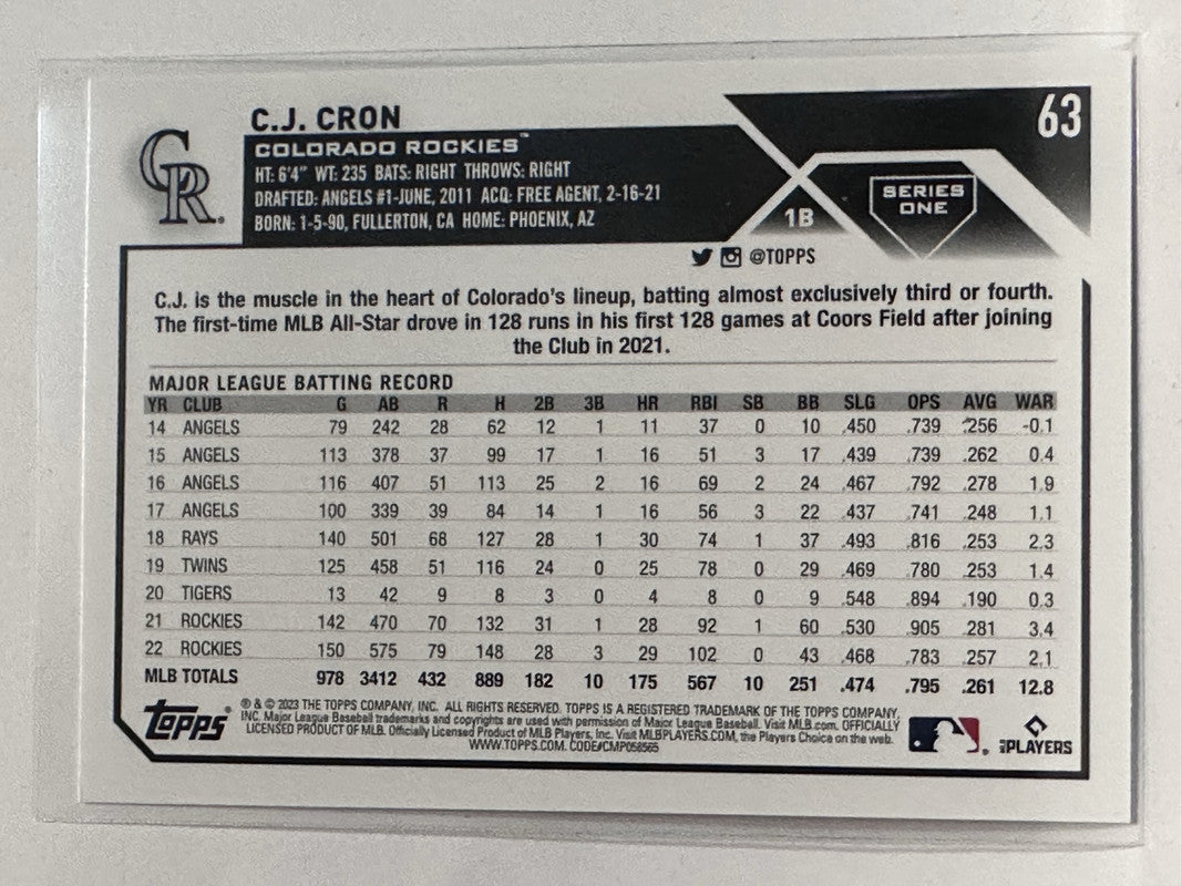 #63 C.J. Cron Colorado Rockies 2023 Topps Series One Baseball Card