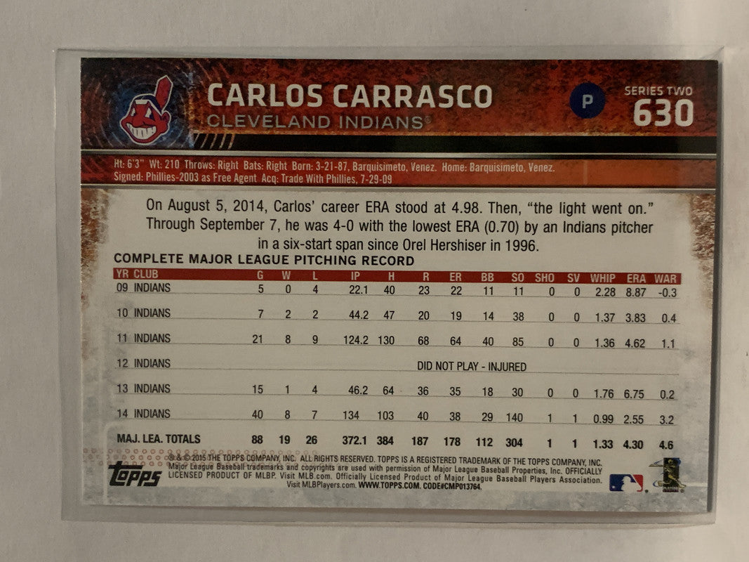 #630 Carlos Carrasco Cleveland Indians 2015 Topps Series two Baseball Card