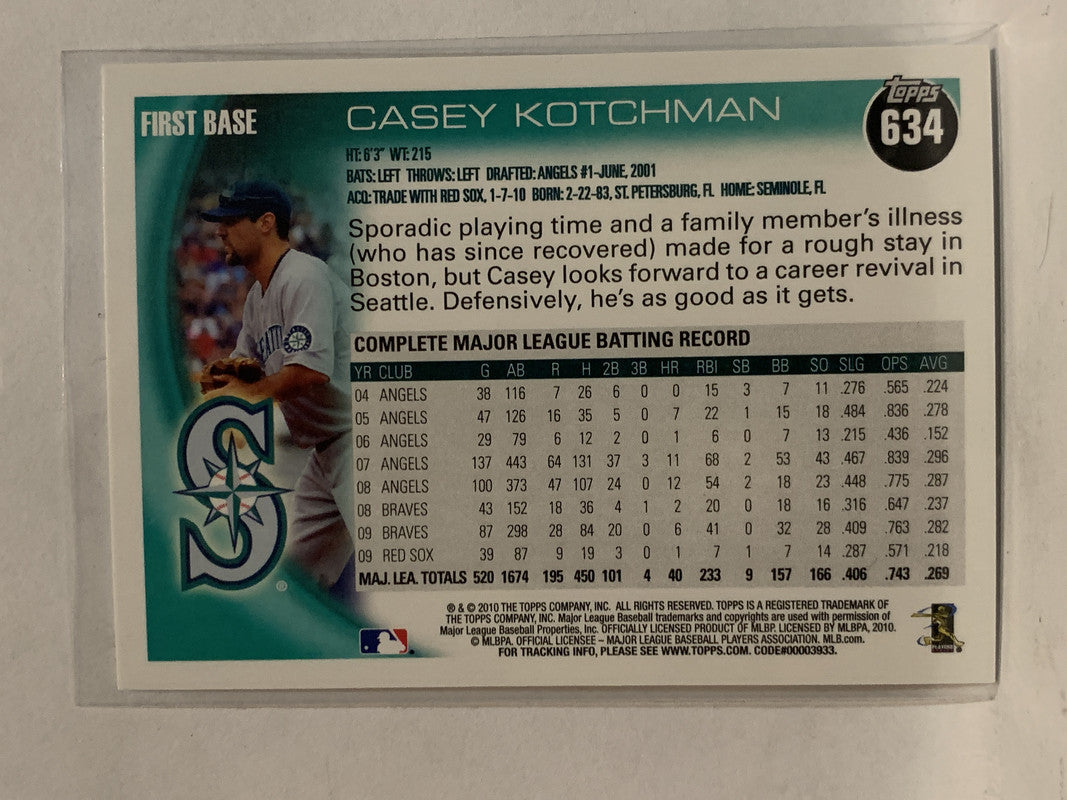 #634 Casey Kotchman Seattle Mariners 2010 Topps Baseball Card