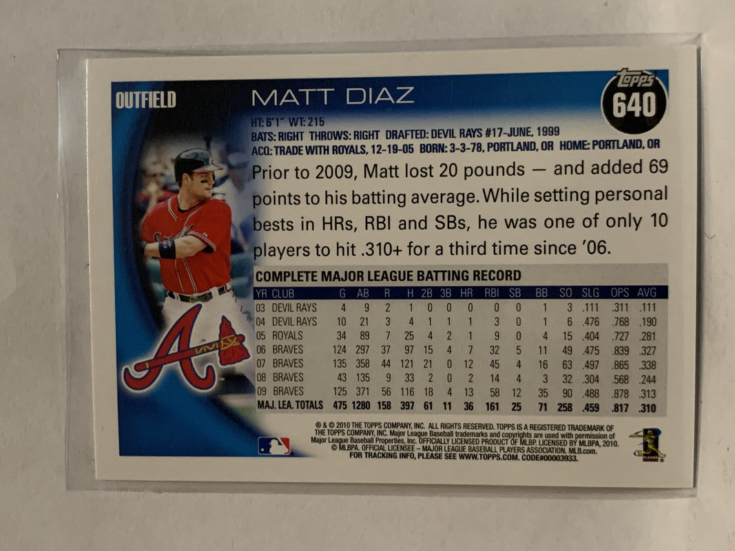 #640 Matt Diaz Atlanta Braves 2010 Topps Baseball Card