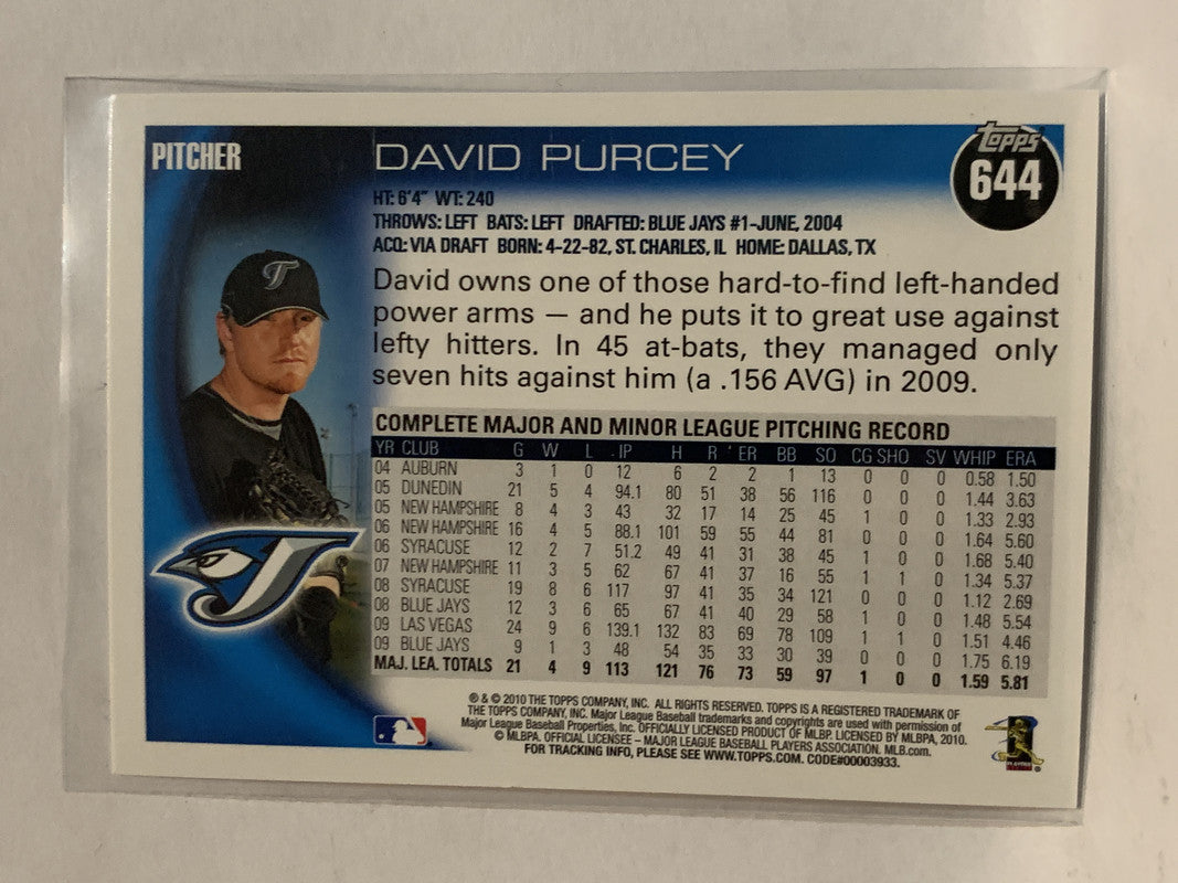 #644 David Purcey Toronto Blue Jays 2010 Topps Baseball Card