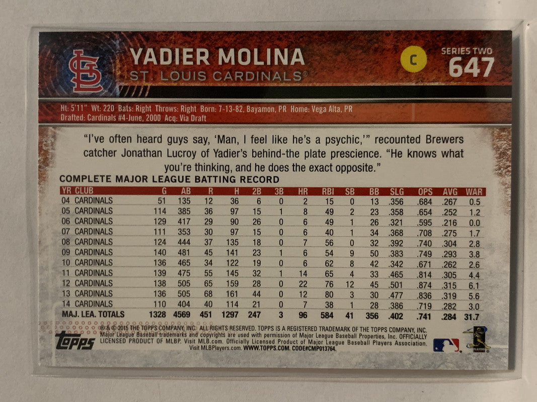 #647 Yadier Molina St Louis Blues 2015 Topps Series two Baseball Card