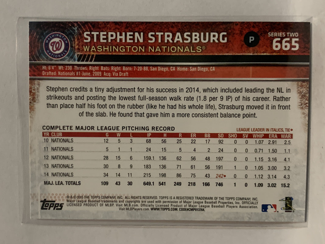 #665 Stephen Strasburg Washington Nationals 2015 Topps Series two Baseball Card