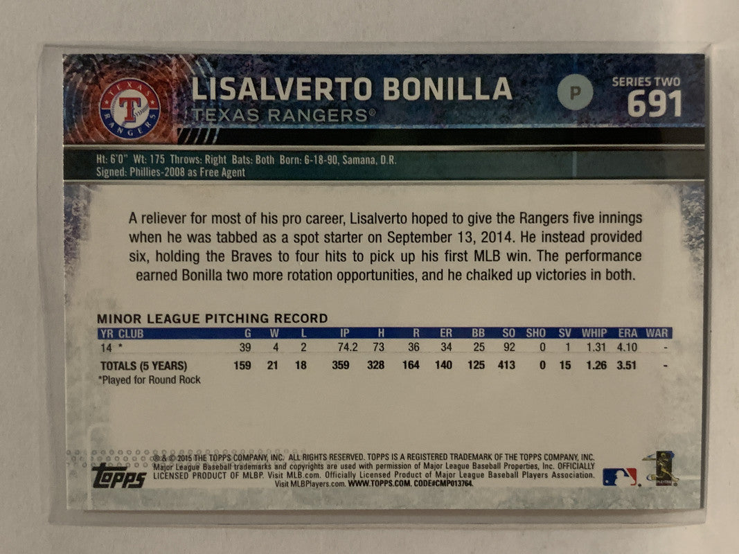 #691 Lisalverto Bonilla Rookie Texas Rangers 2015 Topps Series two Baseball Card