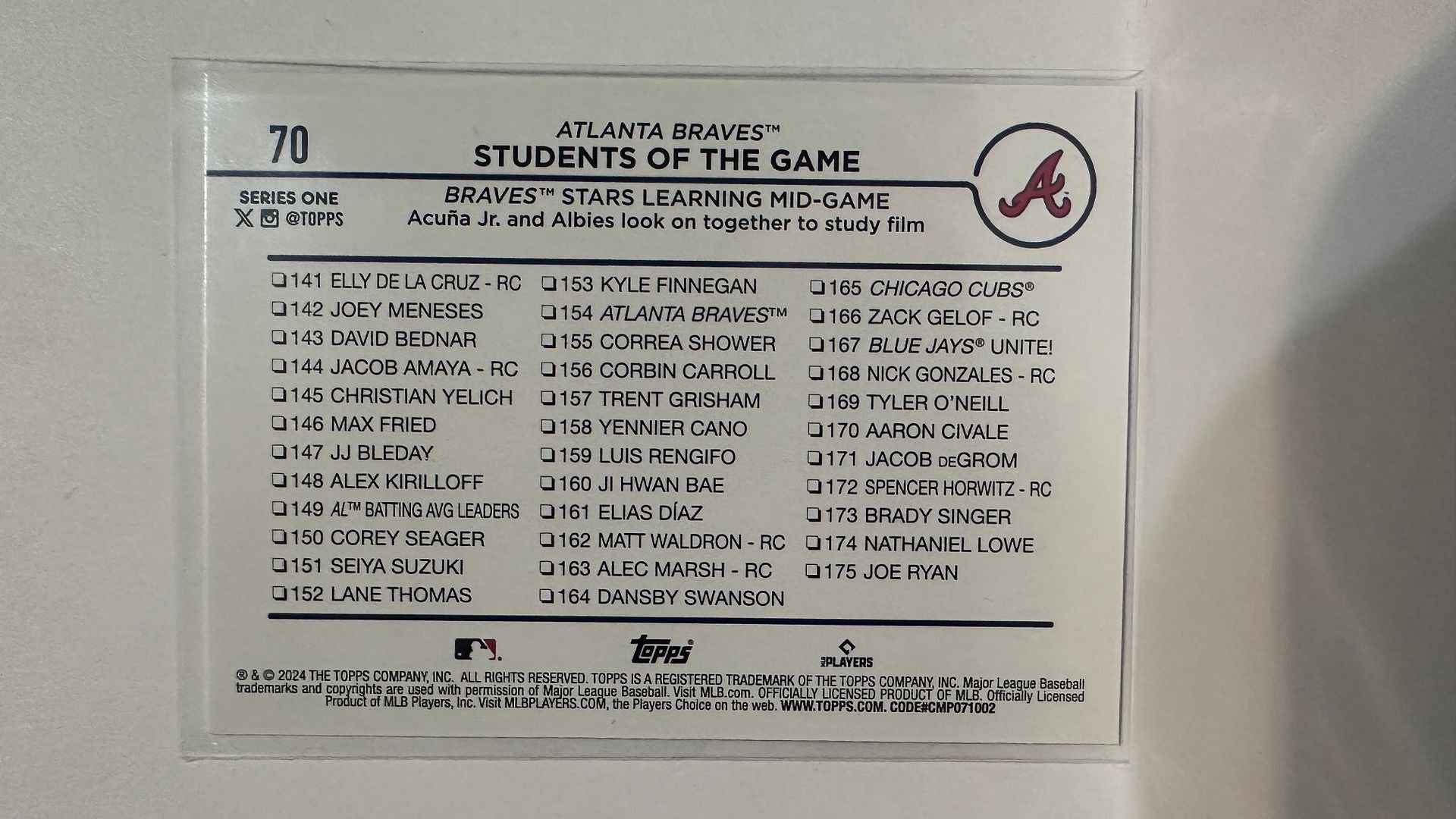 #70 Students of the Game Atlanta Braves 2024 Topps Baseball Card