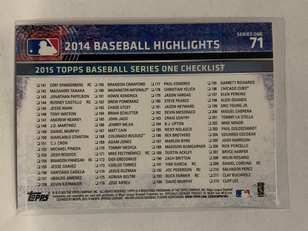 # 71 Adrian Beltre Checklist Texas Rangers 2015 Topps Series One Baseball Card