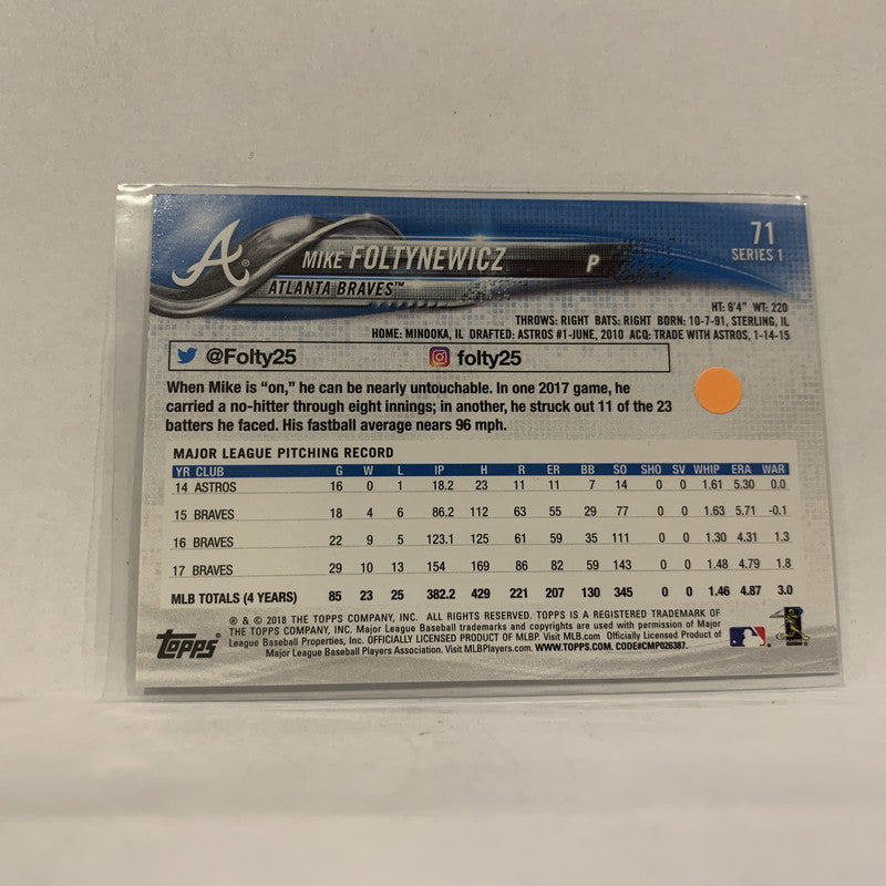 #71 Mike Foltynewicz Atlanta Braves Series 1 2018 Topps Baseball Card A1V