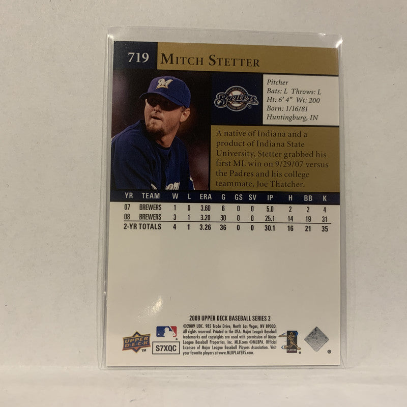 #719 Mitch Stetter Milwaukee Brewers Series 2 2009 Upper Deck Baseball Card A2I