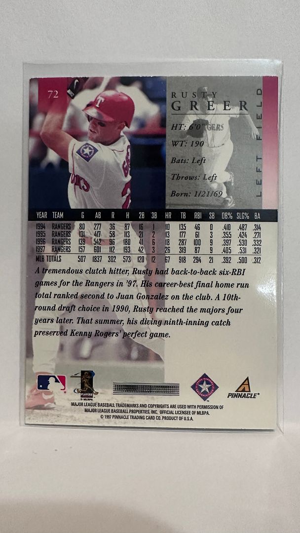 #72 Rusty Greer Texas Rangers 1997 Pinnacle Baseball Card
