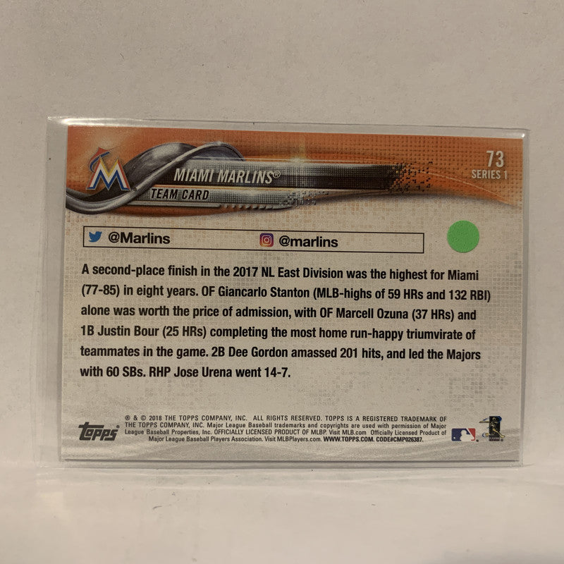 #73 Team Card Miami Marlins Series 1 2018 Topps Baseball Card A2I