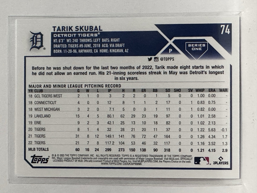 #74 Tarik Skubal Detroit Tigers 2023 Topps Series One Baseball Card