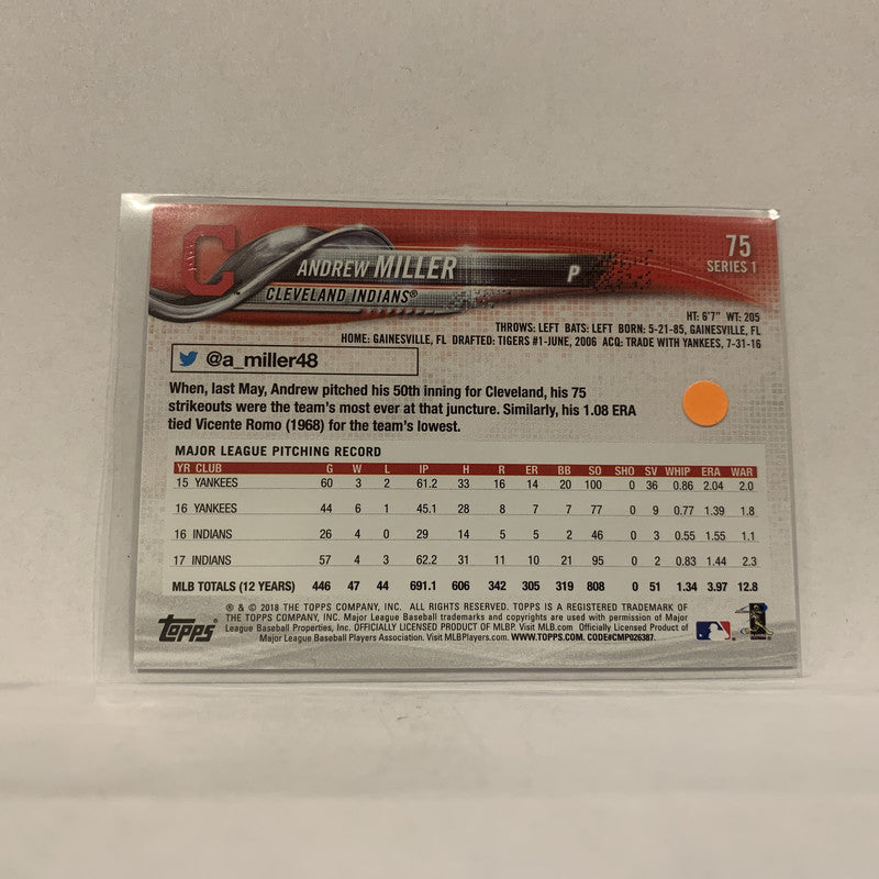 #75 Andrew Miller Cleveland Indians Series 1 2018 Topps Baseball Card A1V