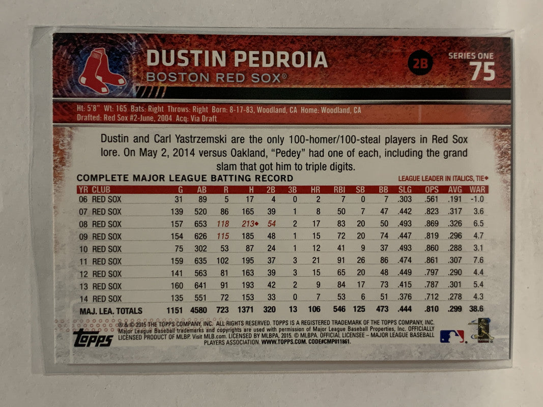 #75 Dustin Pedroia Boston Red Sox 2015 Topps Series One Baseball Card