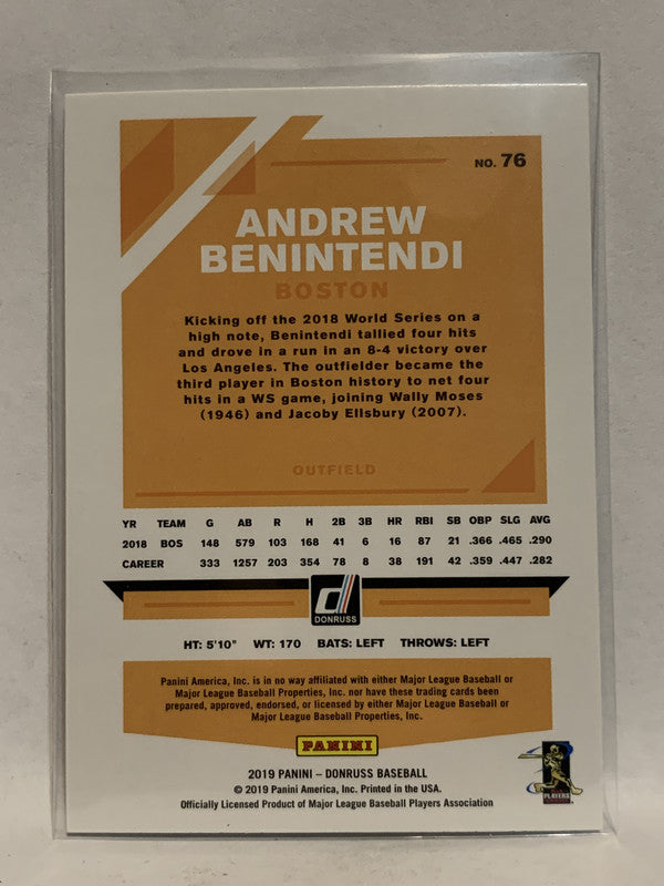 #76 Andrew Benintendi Boston Red Sox 2019 Donruss Baseball Card