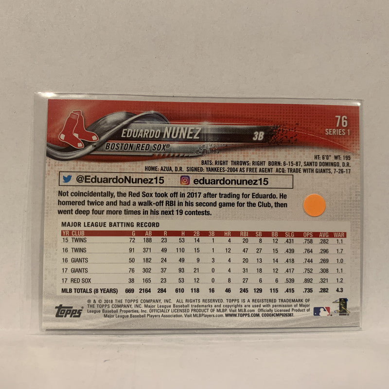 #76 Eduardo Nunez Boston Red Sox Series 1 2018 Topps Baseball Card A2I