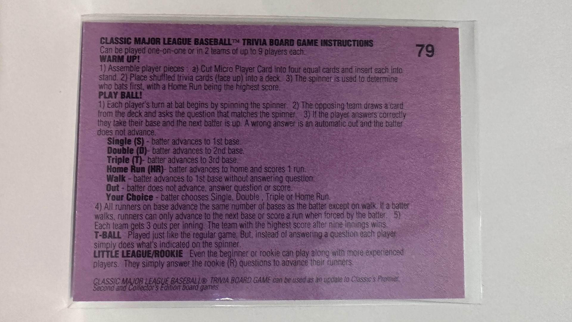 #79 Paul Molitor Trivia Board Game Milwaukee Brewers 1991 Classic Baseball Card