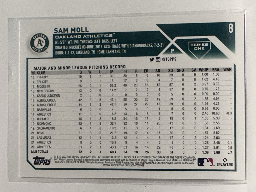 #8 Sam Moll Oakland Athletics 2023 Topps Series One Baseball Card