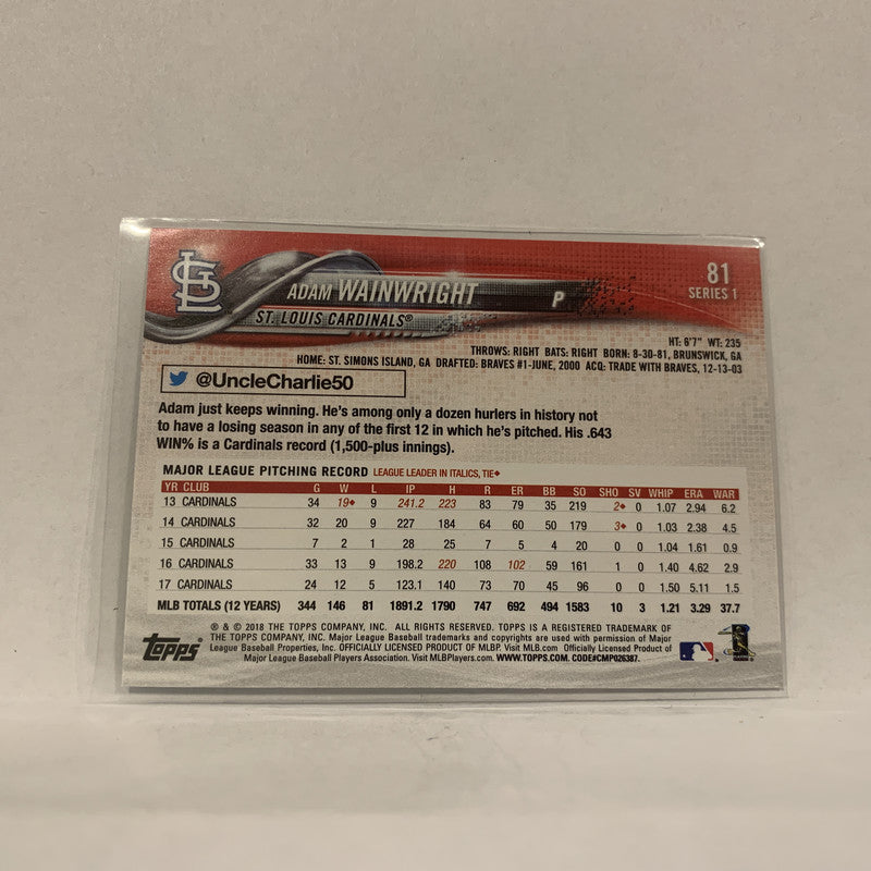 #81 Adam Wainwright St Louis Cardinals Series 1 2018 Topps Baseball Card A1S