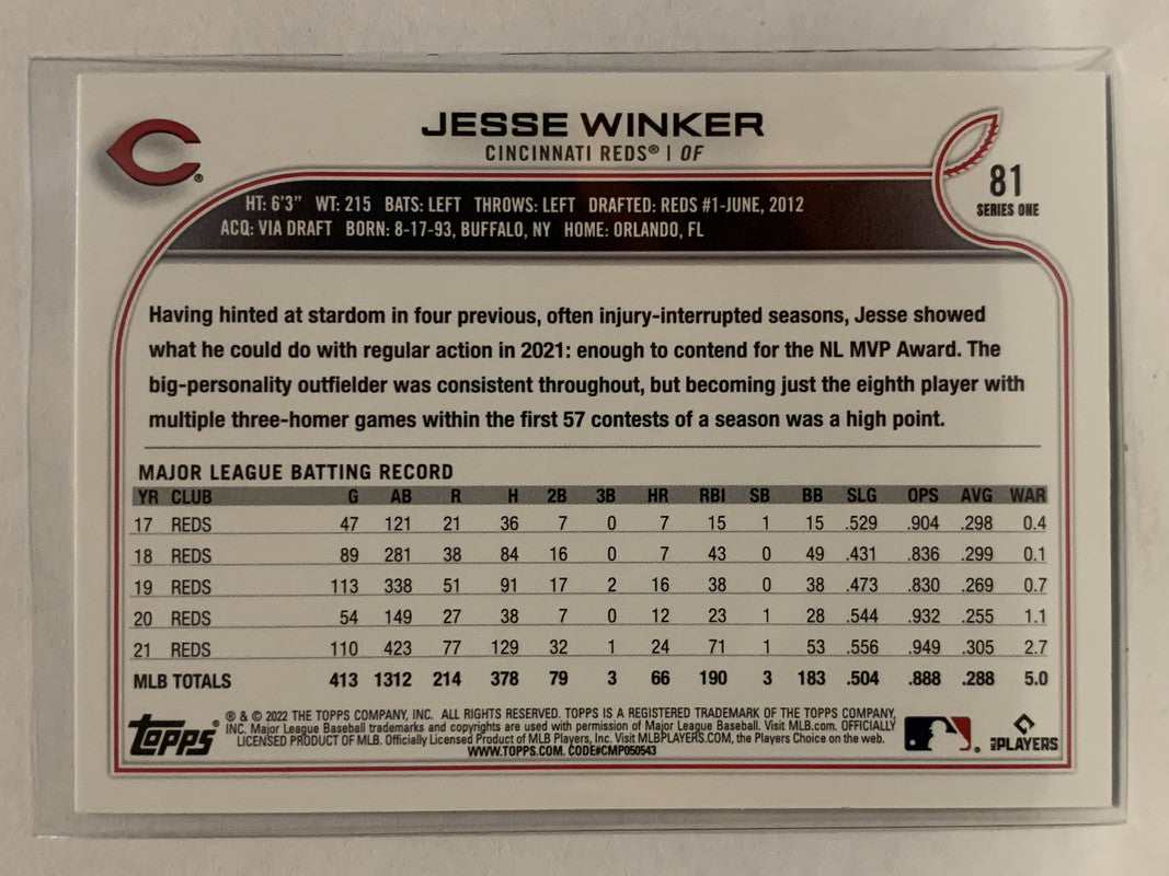 #81 Jesse Winker Royal Blue Cincinnati Reds 2022 Topps Series One Baseball Card MLB