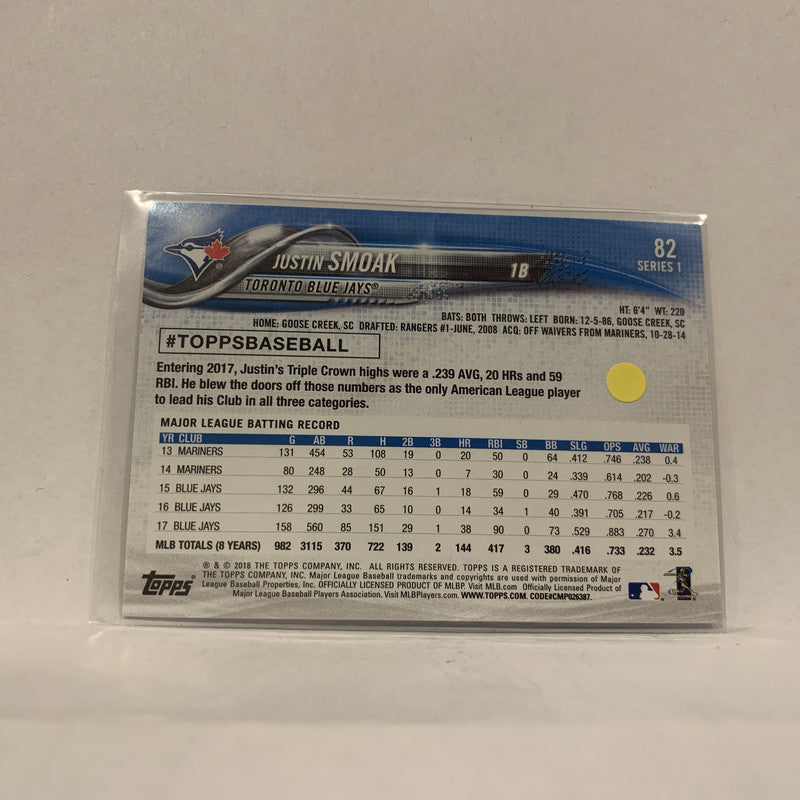 #82 Justin Smoak Toronto Blue Jays Series 1 2018 Topps Baseball Card A1S