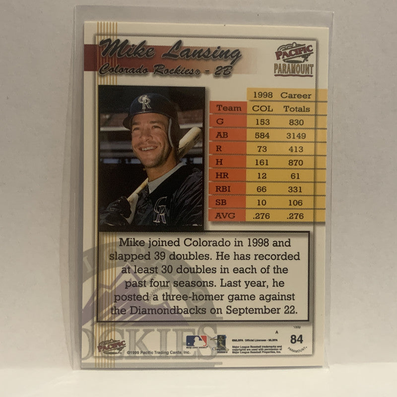 #84 Mike Lansing Colorado Rockies 1999 Pacific Paramount Baseball Card HP