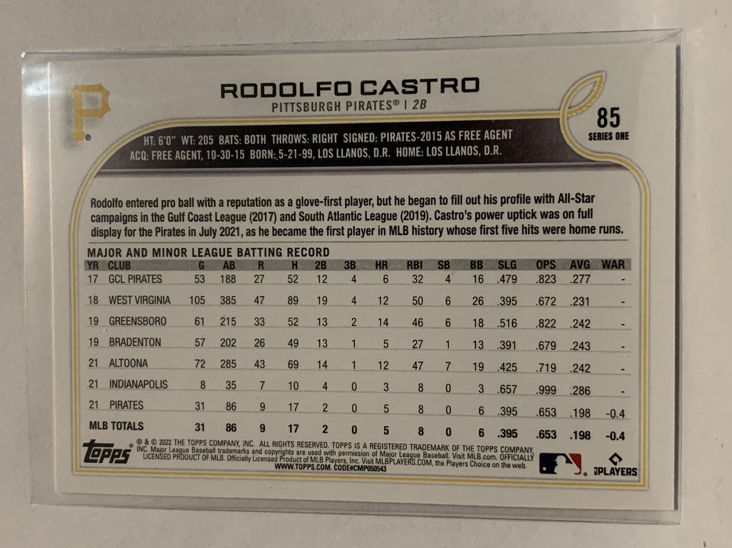 #85 Rodolfo Castro Rookie Pittsburgh Pirates 2022 Topps Series 1 Baseball Card MLB