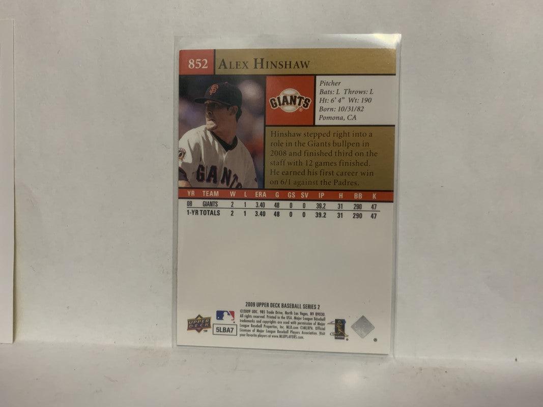 #852 Alex Hinshaw San Francisco Giants 2009 Upper Deck Series 2 Baseball Card NL