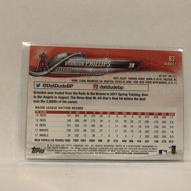 #87 Brandon Phillips Los Angeles Angels Series 1 2018 Topps Baseball Card A2M