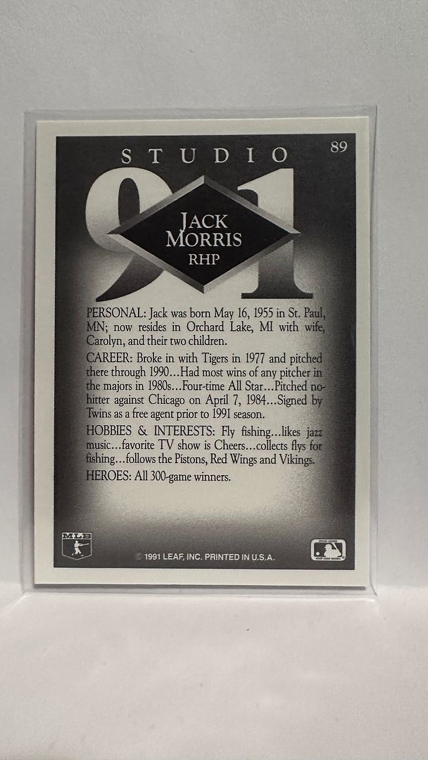 #89 Jack Morris Minnesota Twins 1991 Studio Baseball Card