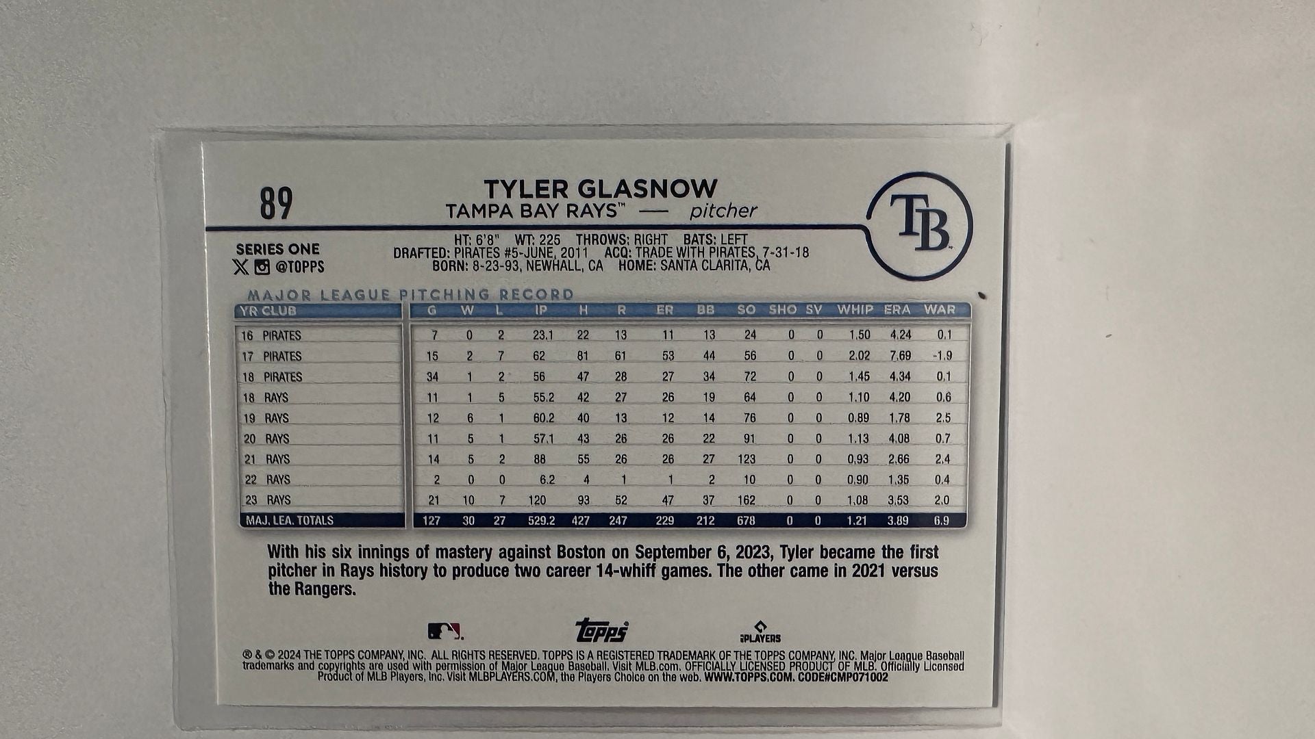 #89 Tyler Glasnow Tampa Bay Rays 2024 Topps Baseball Card