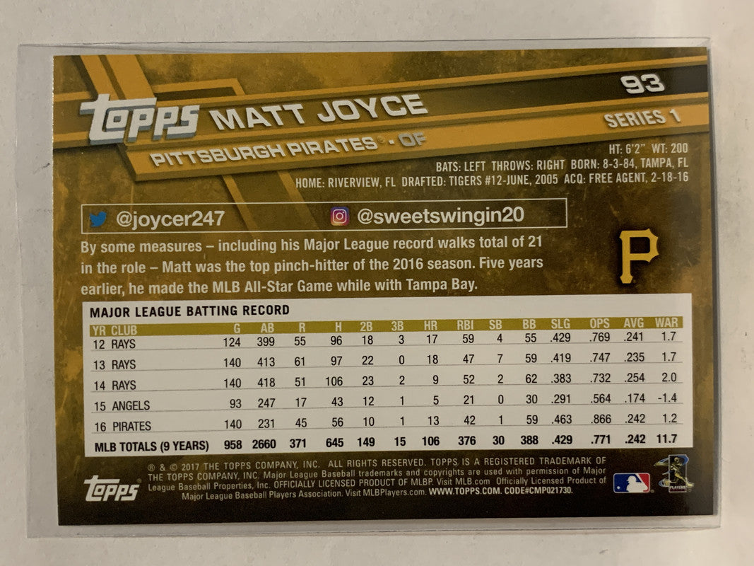 #93 Matt Joyce Pittsburgh Pirates 2017 Topps Series One Baseball Card