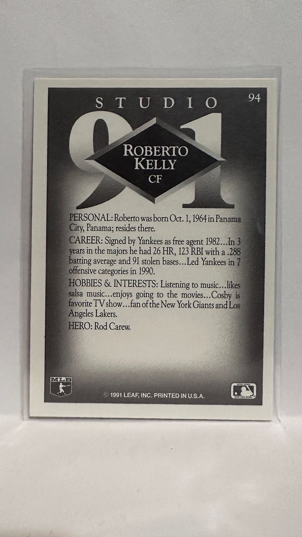 #94 Roberto Kelly New York Yankees 1991 Studio Baseball Card