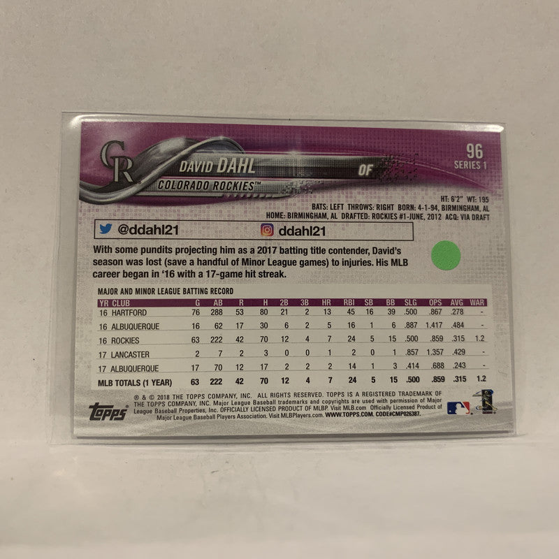 #96 David Dahl Colorado Rockies Series 1 2018 Topps Baseball Card A1R