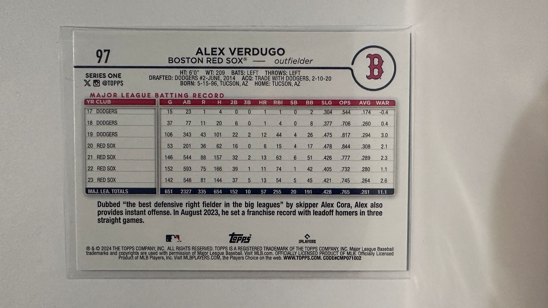 #97 Alex Verdugo Boston Red Sox 2024 Topps Baseball Card