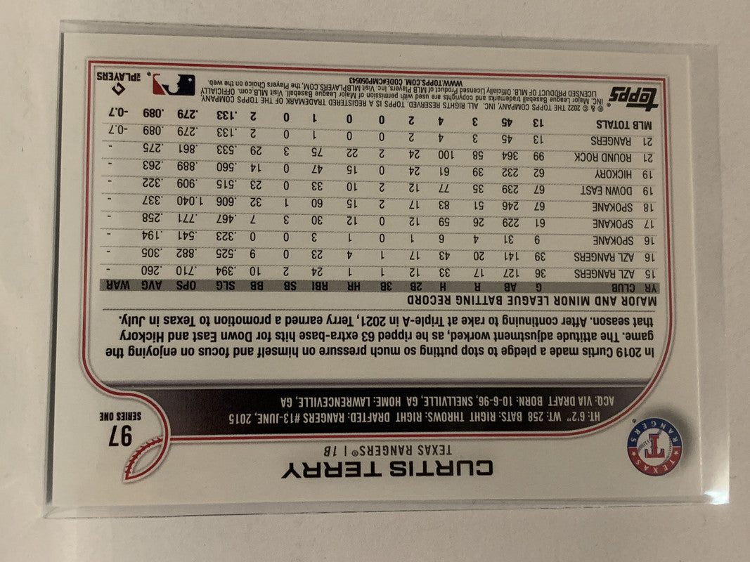 #97 Curtis Terry Rookie Texas Rangers 2022 Topps Series One Baseball Card MLB