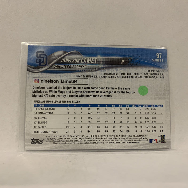 #97 Dinelson Lamet San Diego Padres Series 1 2018 Topps Baseball Card A1R