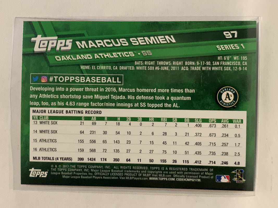 #97 Marcus Semien Oakland Athletics 2017 Topps Series One Baseball Card